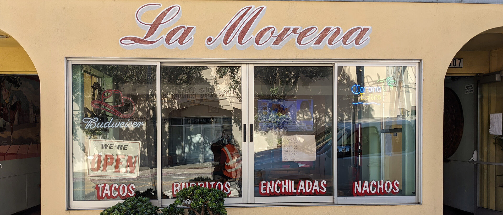 Located in Downtown South San Francisco, the Industrial City, our family owned business has had the priviledge to serve delicious and authentic Mexican food to the local community since 1986. In that time, we have met and served many wonderful people through our restaurant and catering business. It has truly been a blessing.On behalf of all of us at Taqueria La Morena, we would like to thank all of you for helping us become a local landmark and family friendly destination for all of our customers and business clients throughout the Bay Area.