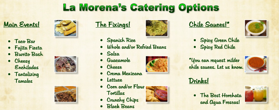 Taqueria La Morena offers catering services to all personal and corporate companies East of Grand Avenue.